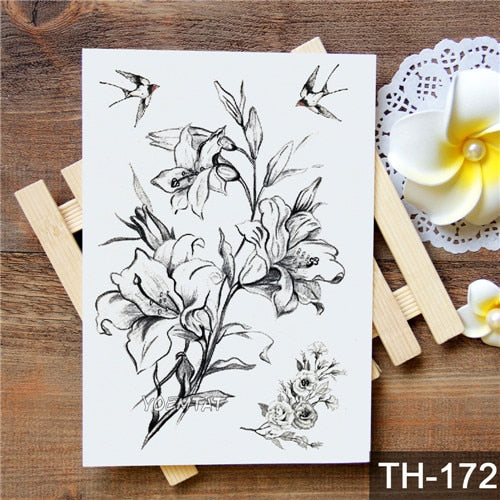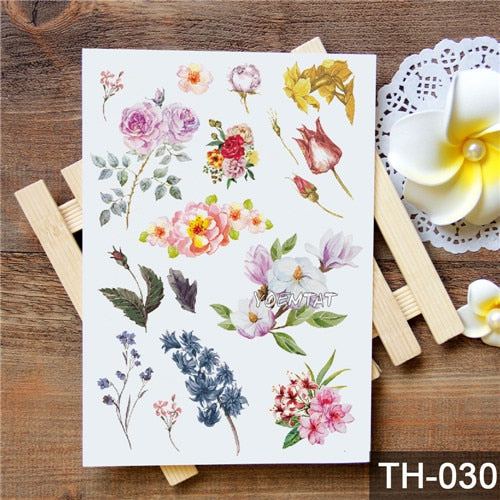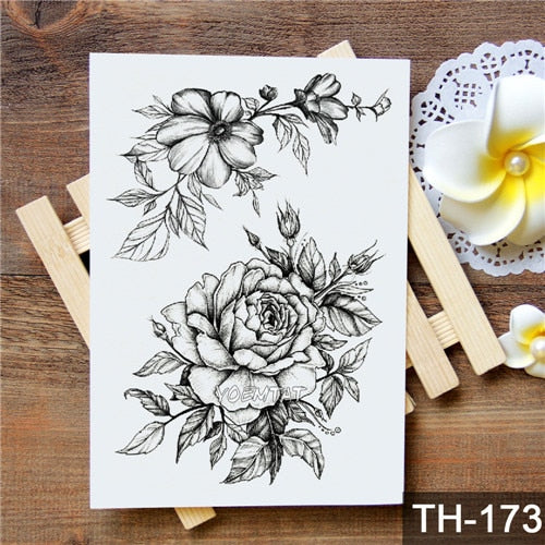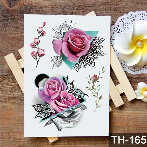 Waterproof Temporary Tattoo Stickers Rose Flowers Leaves Colorful Flash Tatto Sexy Arm Neck Body Art Fake Tattoos For Women Men
