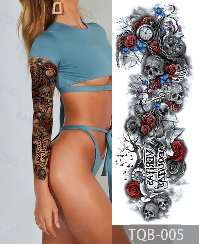 Waterproof Temporary Tattoo Stickers Skeleton Skull Tatoo Temporary Tattoos Men Fake Tattoo Woman Art Waterproof Tattoo Stickers