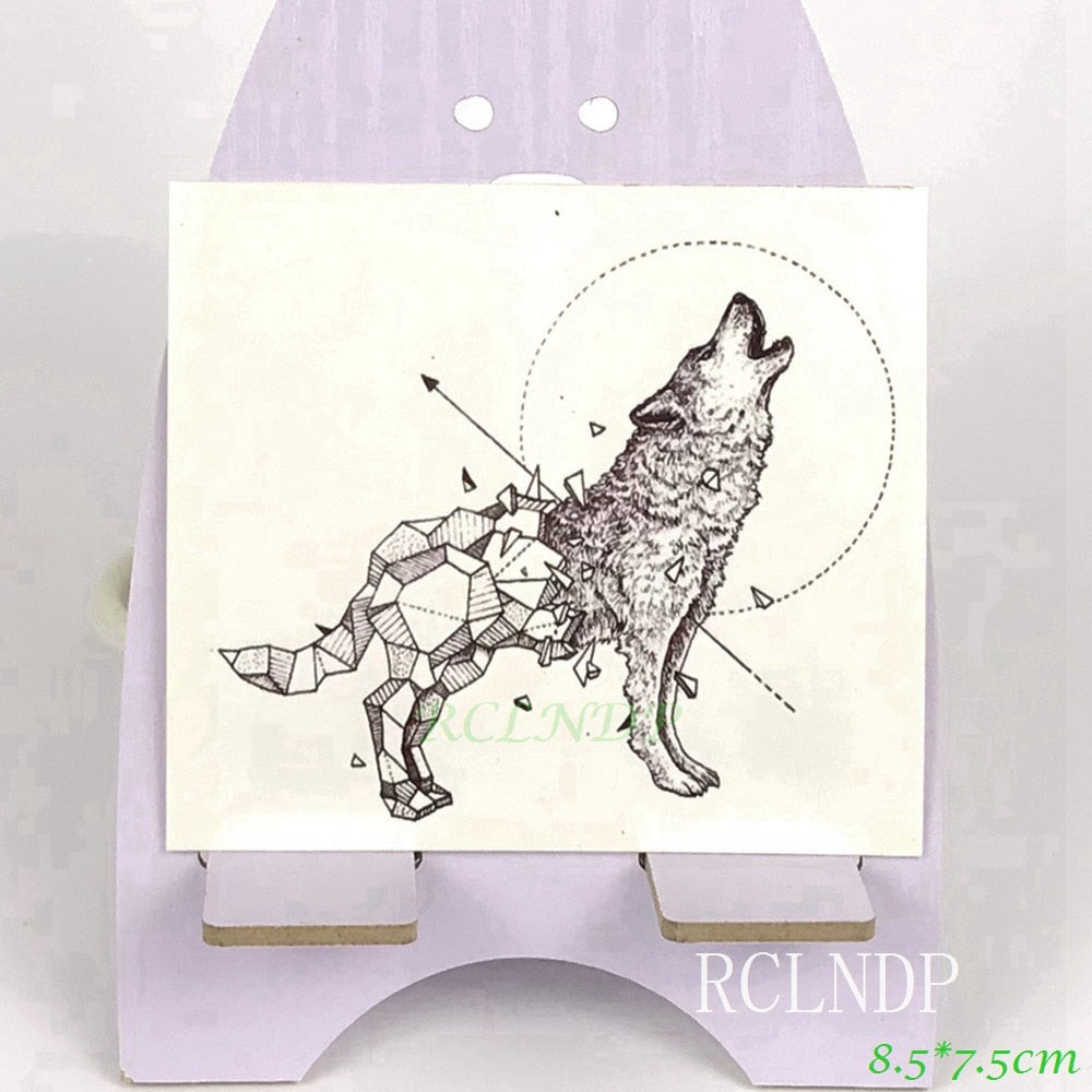 Waterproof Temporary Tattoo Stickers Wolf Dog head fake Tatto Geometric animal Flash Tatoo Hand Back Foot for Girl Women Men