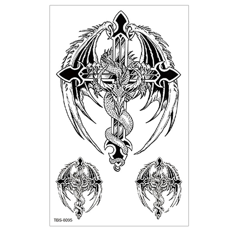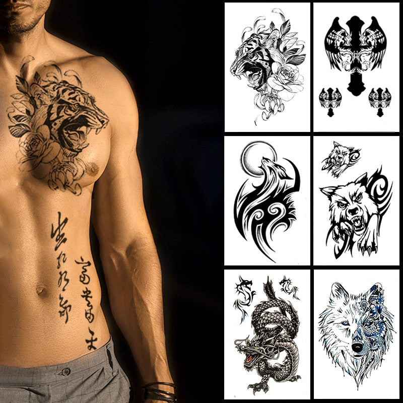 Waterproof Temporary Tattoo wolf tiger totem Fake Tatto Flash Tatoo cross angel Hand Arm middle size art Tattoos for Women men