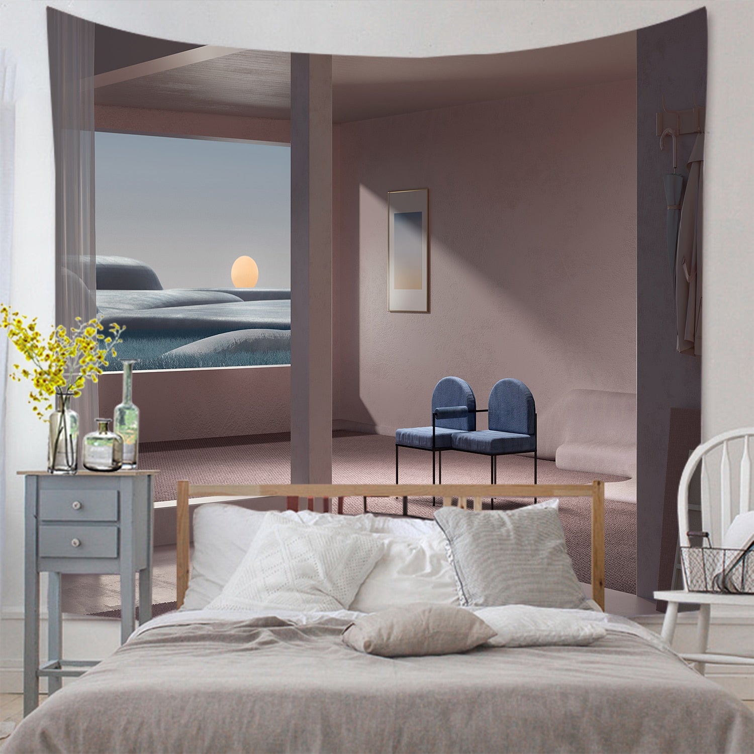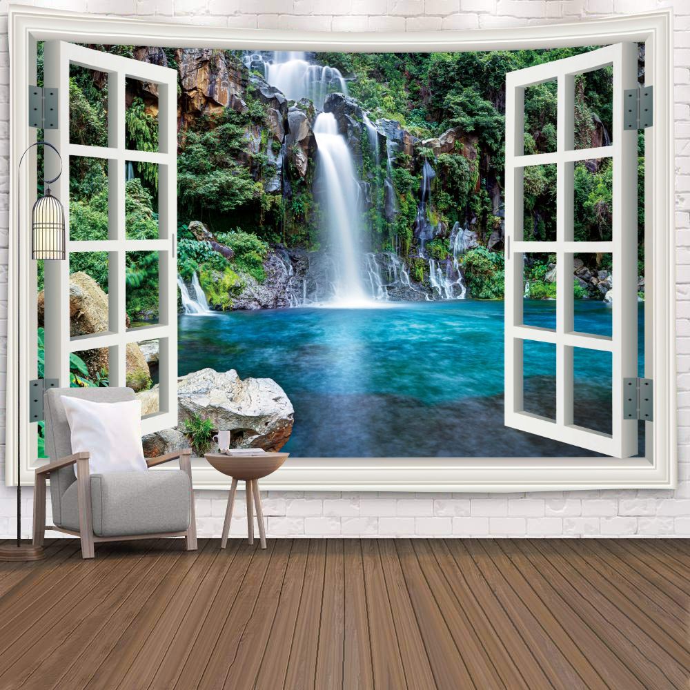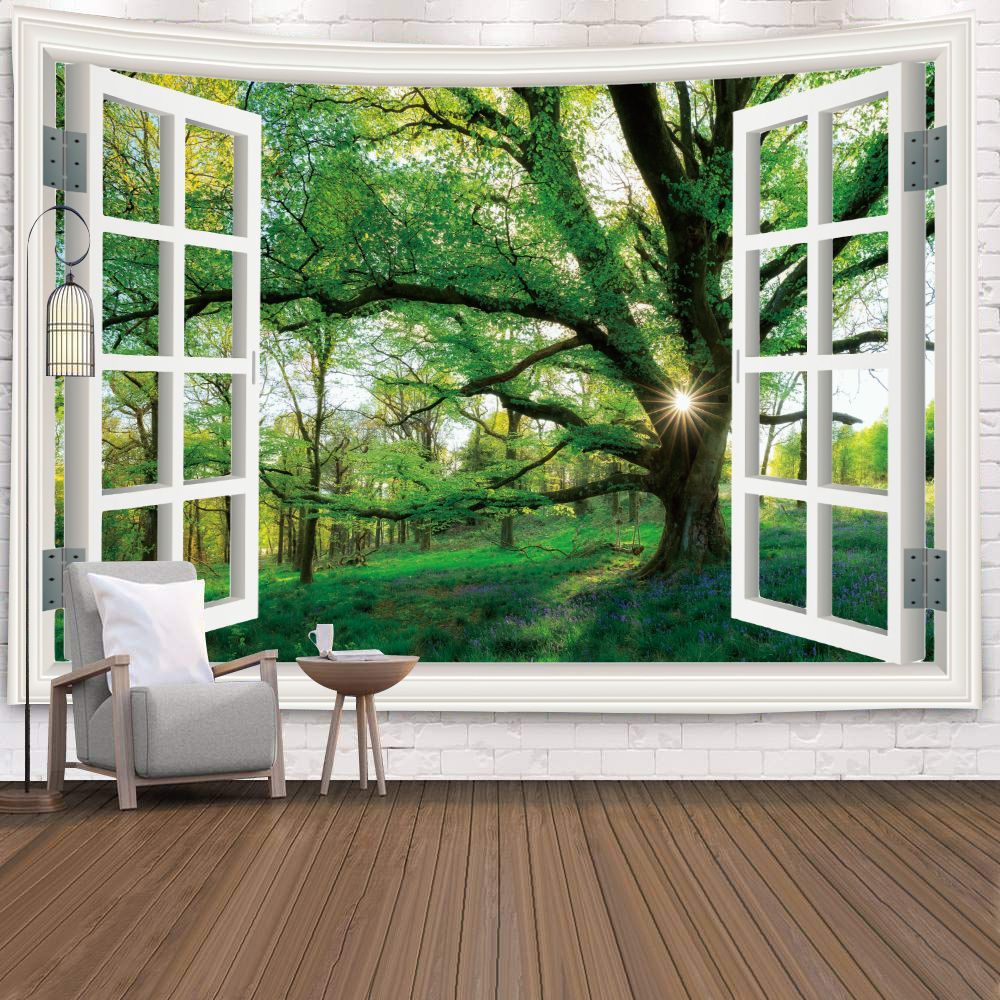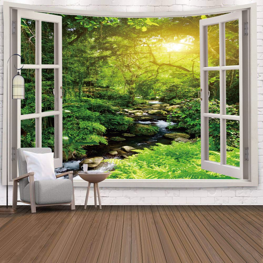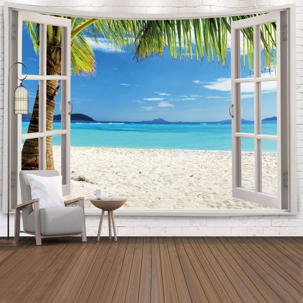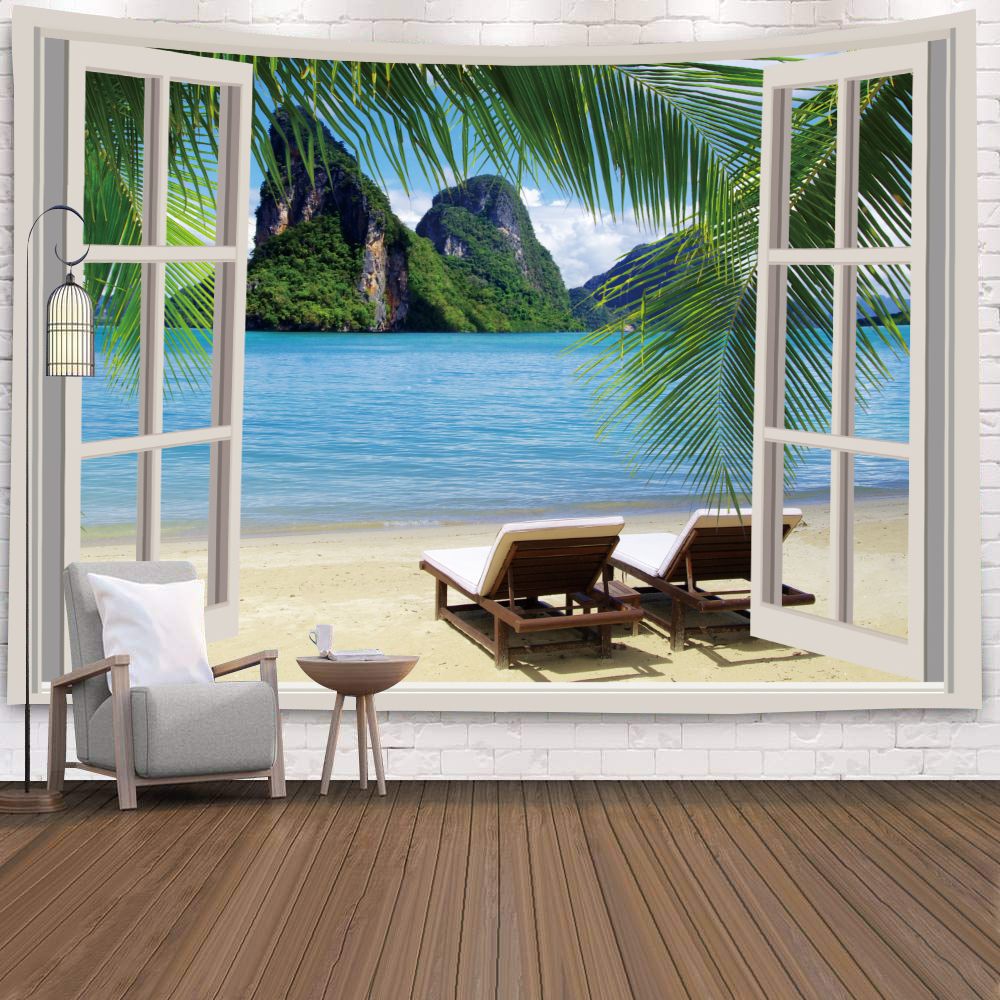 Window Tapestry View Green Plant 3D Sea Flowers Wall Hanging Carpet Blanket Bedspread Yoga Towel Home Beach Wall Decor Dropship
