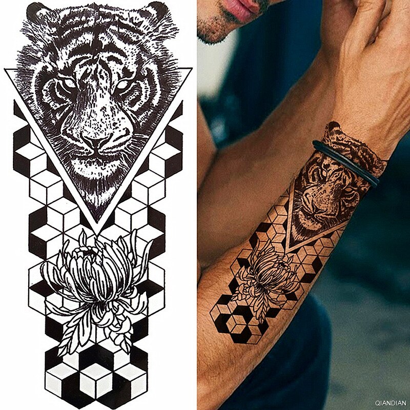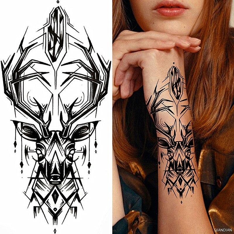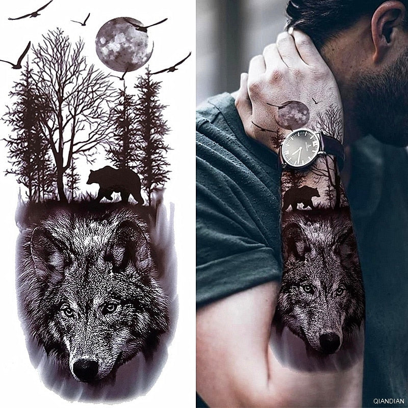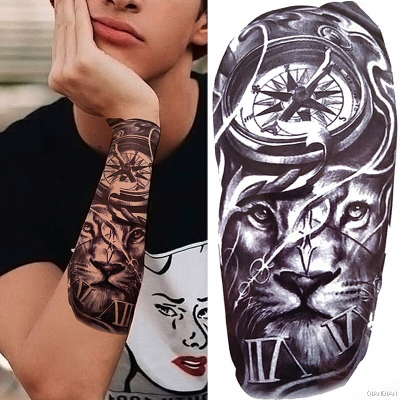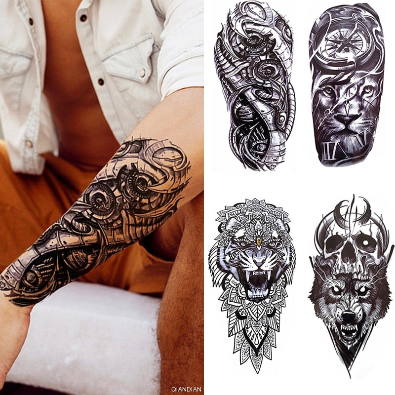 Wolf Tiger Manipulator Temporary Tattoo Sticker Waterproof Skull Flower Compass Eagle Deer Body Arm Sleeve Fake Totem Women Man