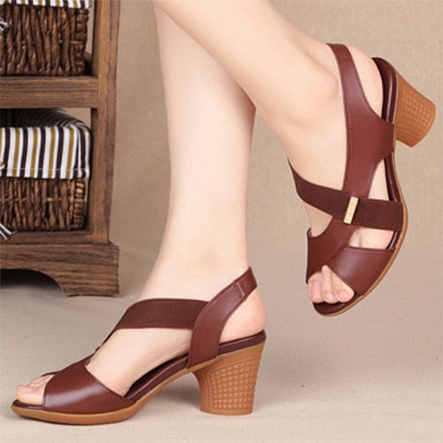 Women Ankle Strap Sandals Peep Toe High Heels 2021 Rome Summer Women's Thick Heel Comfortable Shoes Ladies Fashion PU Footwear 712