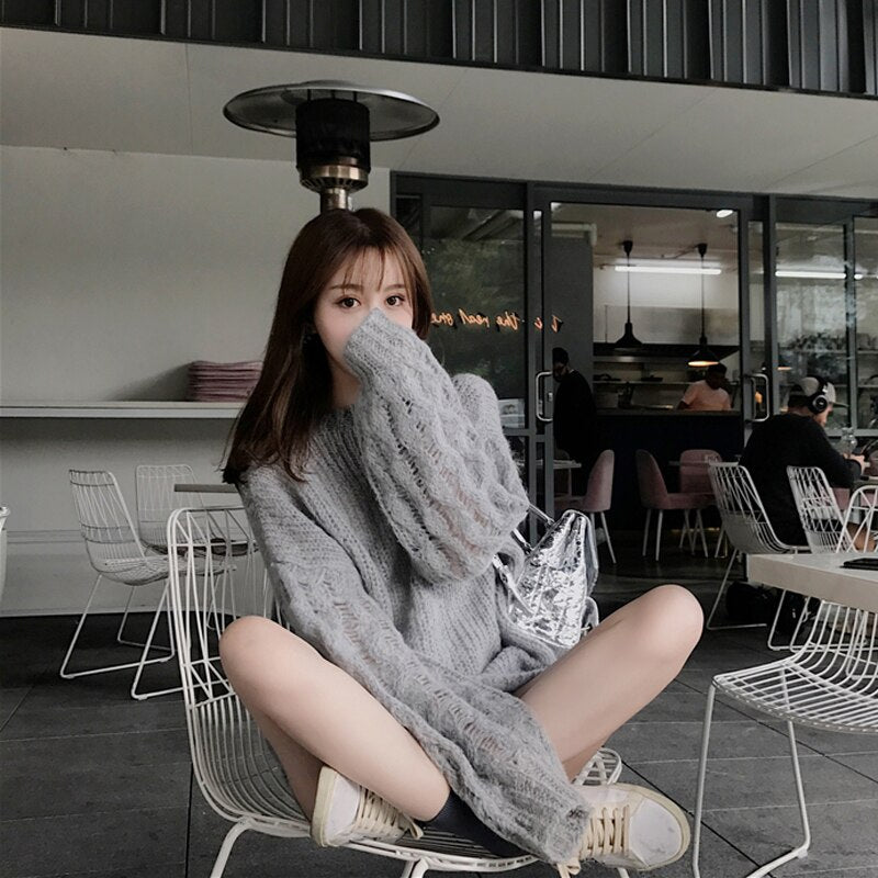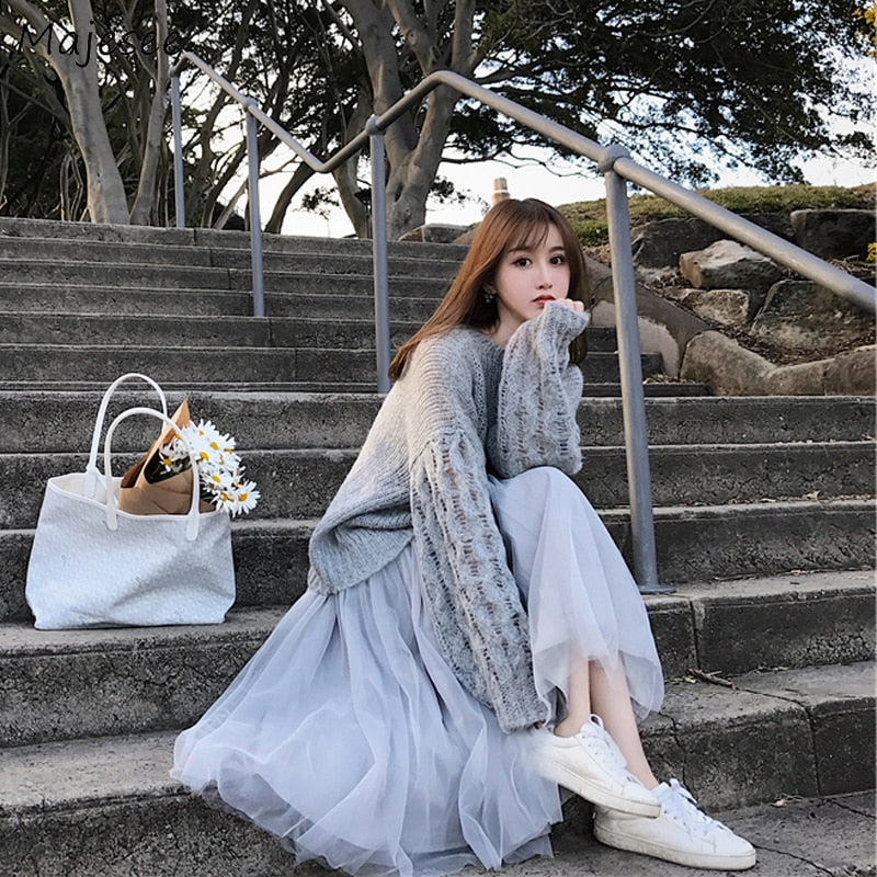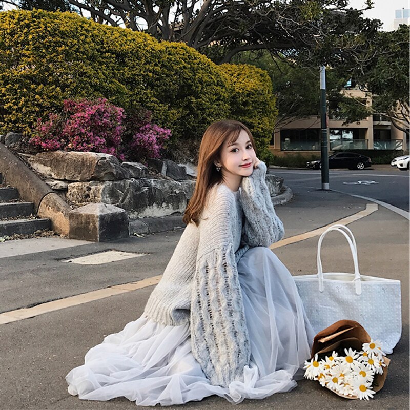 Women Two Piece Sets Autumn Winter Sweater Girls Loose Simple Knitting Tops Womens Mesh Elegant Casual Korean Style Fashion Chic