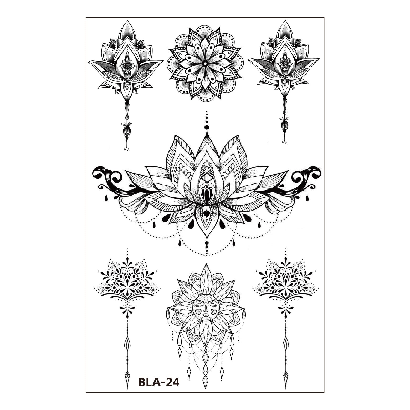 Women Waterproof Temporary Tattoo Sticker Mandala Flower Tatoo Elephant Feather Body Art Water Transfer Clavicle Temporary Tatto