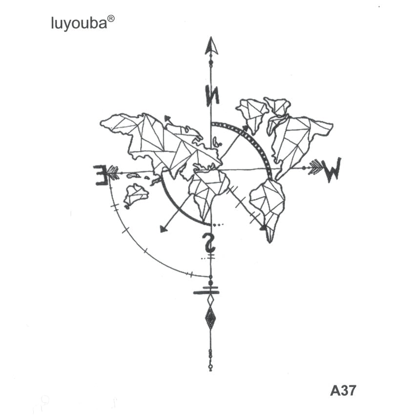 World Map Fake Tattoo Tatuajes Tatuagem Body Art Waterproof Temporary Tattoo Sticker Compass Tatoo Temporary Stickers Tatoos