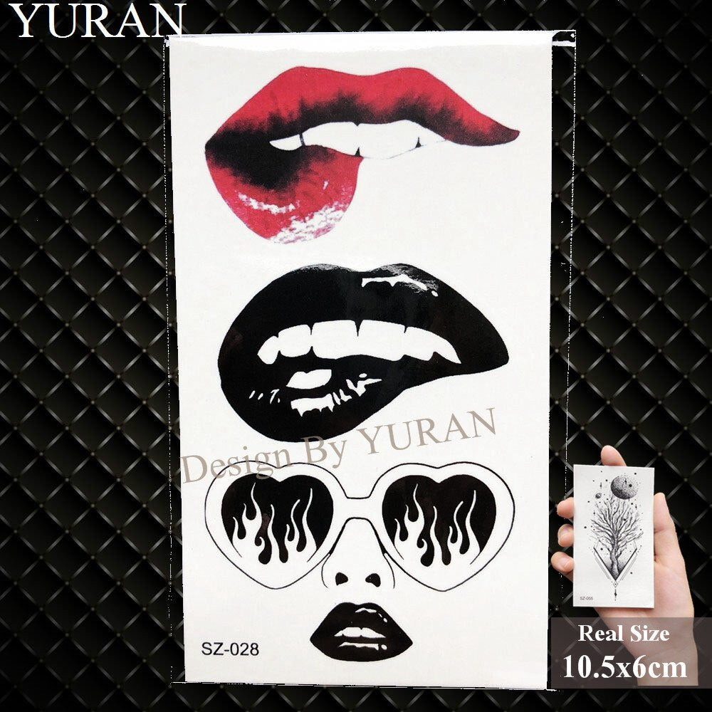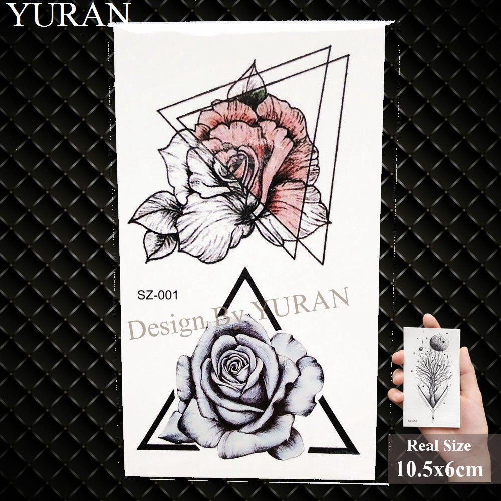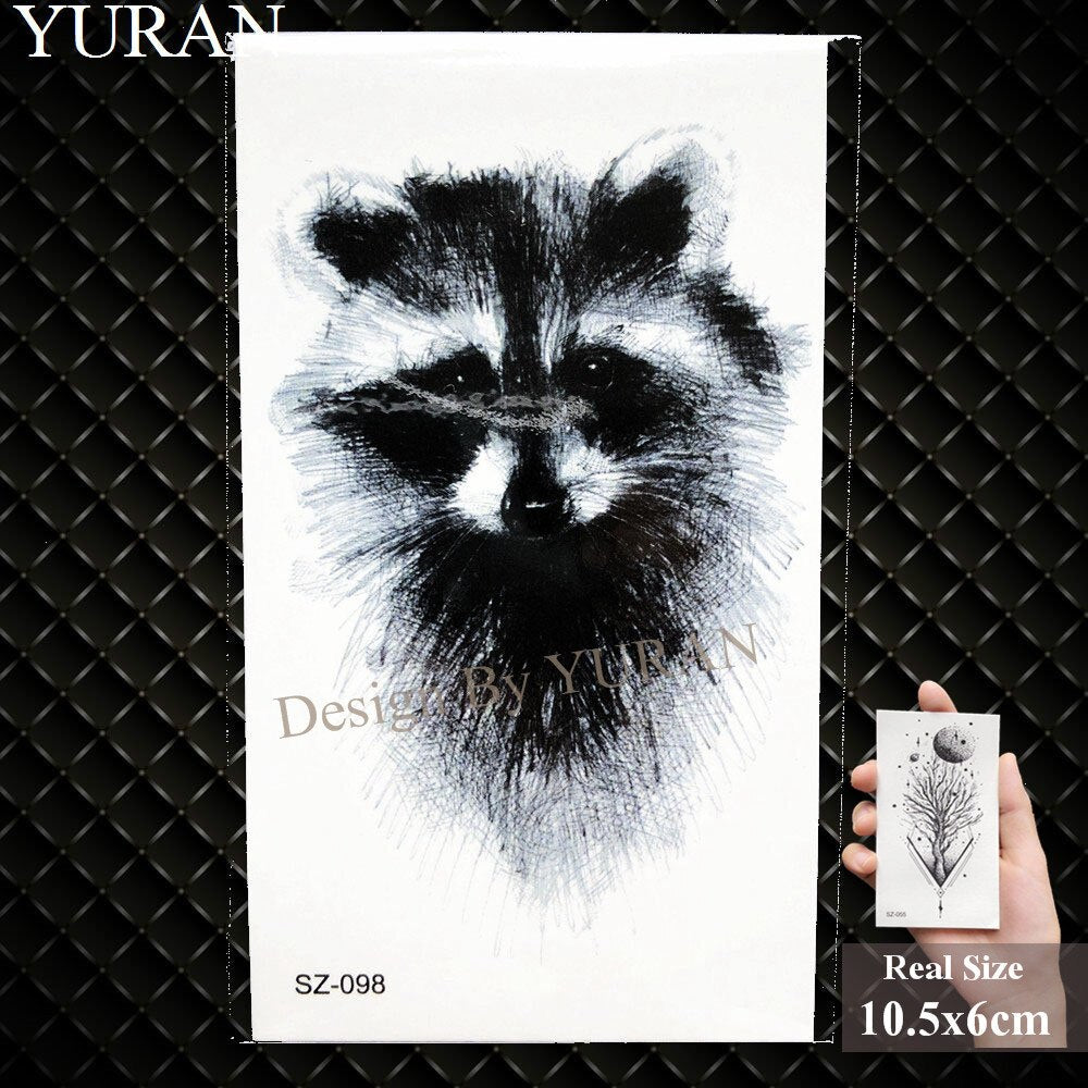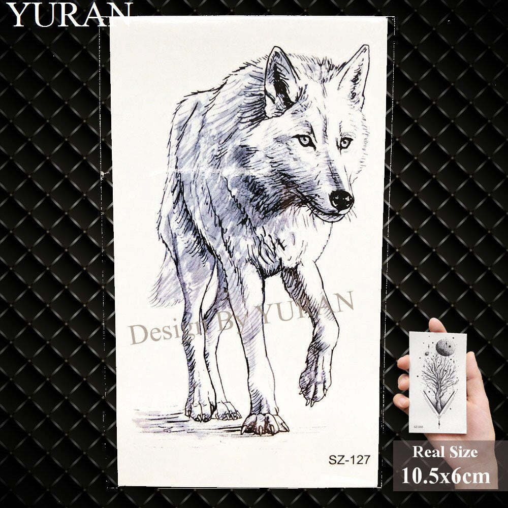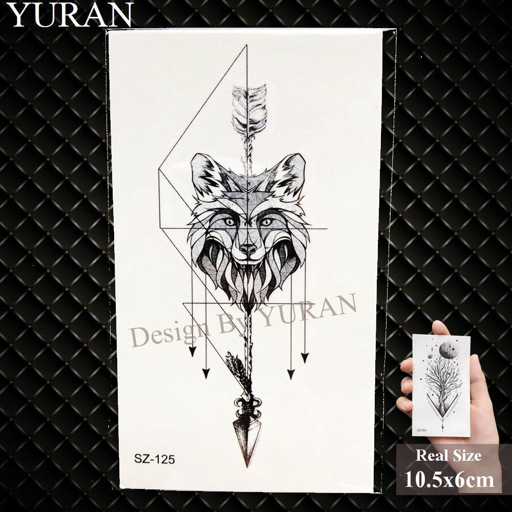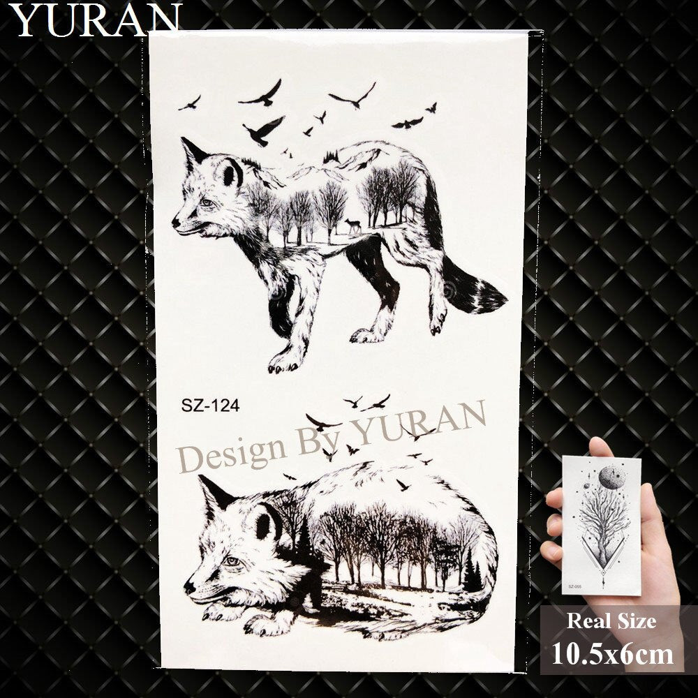 YURAN Black Mountain River Geometric Tattoo Stickers Women Body Arm Moon Temporary Tattoo Men Ankle Wolf Round Fake Tatoo 3D